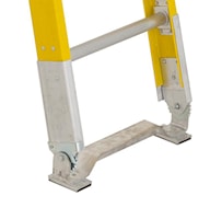 Rallonge d’échelle en fibre de verre ultra robuste de la série 6200. Conforme ou dépasse les normes CSA de catégorie 1AA et ANSI de type 1AA. Rails latéraux en fibre de verre non conducteurs durables de couleur jaune de sécurité haute visibilité. La conception rivetée des échelons sur les rails maintient la résistance continue des fibres et permet une réparation facile. Échelons dentelés antidérapants pour une escalade en toute sécurité. La barre transversale supérieure permet de lever ou d’abaisser l’échelle par l’avant et offre une rigidité en torsion. Les échelons robustes de qualité supérieure se verrouillent pour plus de durabilité. L’assemblage de pieds exclusif « 1 pièce » avec roue à denture droite offre une résistance, une durabilité et une résistance à la torsion inégalées.