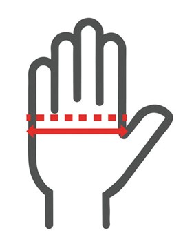Mesurez la largeur de votre main à partir de la base de votre index et à travers vos jointures.