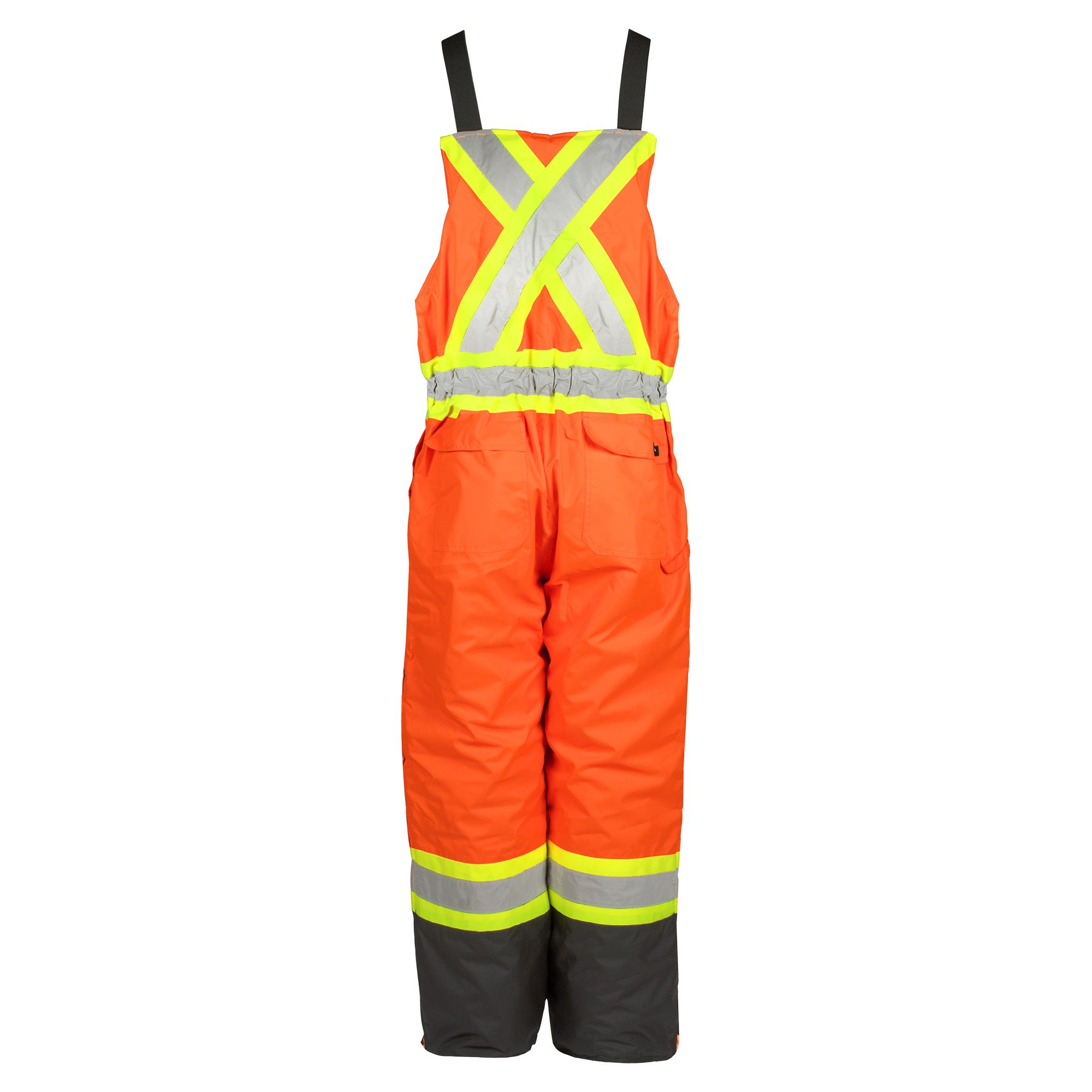 Cette salopette haute visibilité doublée en polyester avec revêtement en polyuréthane est dotée de coutures scellées et déperlantes. Sa doublure en taffetas de polyester matelassée avec isolation en polyfill vous garde au chaud. En plus de bretelles élastiques robustes à l’épaule, elle possède des bandes réfléchissantes et contrastantes pour assurer votre visibilité et trois fermetures à glissière à double sens : une à l’avant avec rabat tempête et deux de la cheville à la hanche.